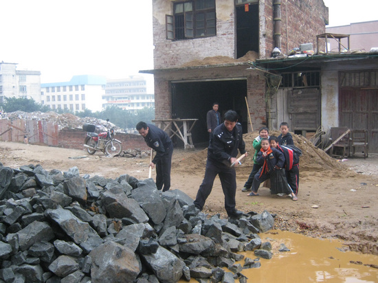 “好了,以后再也不怕被水弄濕鞋子了!” “警察叔叔真好,幫我們鋪平了上學(xué)的路,以后不用穿水鞋上學(xué),可以穿跑鞋了……”這是一名正高高興興地哼著歌兒、連蹦帶跳在上學(xué)路上的小學(xué)生告訴筆者發(fā)生在藤縣藤州鎮(zhèn)潭津小學(xué)人民警察“學(xué)雷鋒”的動(dòng)人故事。