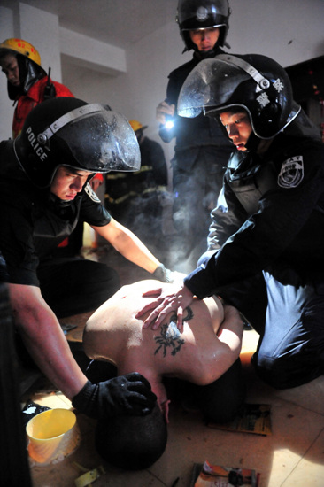 特巡警一擁而入成功控制住犯罪嫌疑人蘇某。梁觀遠 攝