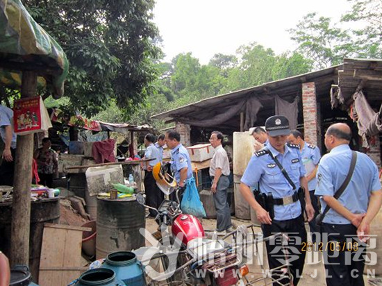 梧州零距離網訊(通訊員 周靜)5月8日,公安機關聯合工商、安監等部門對高旺村30多間養豬場進行了突擊清查,發現兩間養豬場有熬制潲水油的違法行為,并且當場收繳兩桶潲水油。