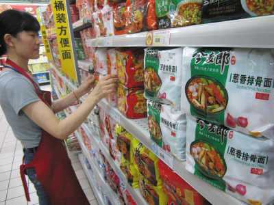 ????昨日,記者來到位于上海市浦東新區乳山路上的農工商超市,一進二樓中庭就看到今麥郎的一款手打雞蛋拉面和香辣肉醬炒面正在促銷。而位于三樓的方便面專區,今麥郎不少系列的方便面仍在銷售,其中,被曝出問題的“今野拉面”、“一元王香辣牛肉面”便赫然在列。超市銷售人員表示,一直以來今麥郎方便面的銷售情況都不錯,并不知道今麥郎的幾種方便面被曝出問題,也沒有接到撤貨的通知。這一說法得到了前來上貨的貨架經理的證實。不過他透露,這幾天一直沒有見到今麥郎公司的工作人員。