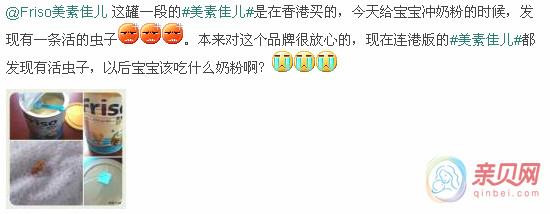 網(wǎng)友“紫-米”在微博上爆料港版美素佳兒內(nèi)有蟲子(親貝網(wǎng)配圖)