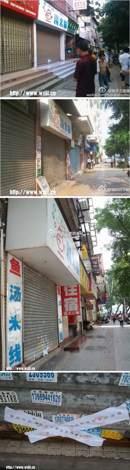 ??? 眾多網友拍攝“魚湯米線”連鎖飲食店被查封并發于新浪微博。(圖片來源:@聰明的丁喜 @兔子之豬豬 @一朵花肥兔)
