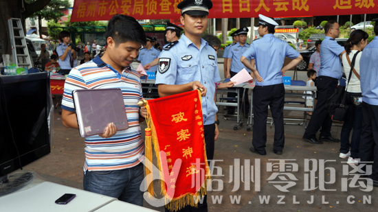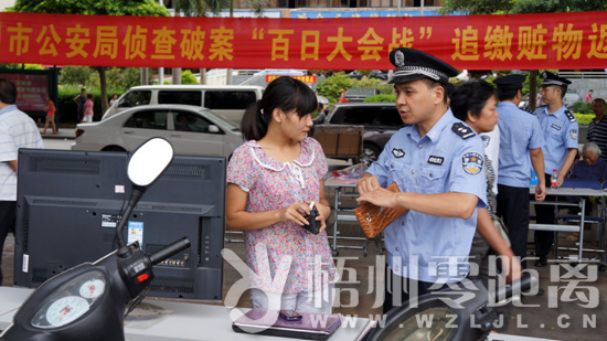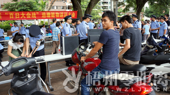 梧州零距離網訊(記者 覃燕霞 通訊員 曾亮)今日(8月17日)上午,我市公安局在鴛江麗港中心廣場舉行偵查破案“百日大會戰”追繳贓物返還大會,追繳回來的56臺摩托(助力)車以及一批電腦、電視等物品全部被失主領回。