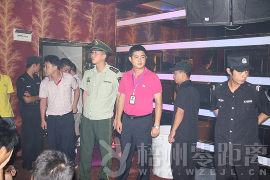 梧州零距離網訊(通訊員 朱庭源)為策應民調,加強社會面的控制,嚴厲打擊娛樂場所“黃、賭、毒”等違法犯罪行為,藤縣公安局按照副縣長、公安局黨委書記、局長林峰以及局黨委的部署要求,加大對娛樂場所清查整治力度,最大限度地控制毒品在娛樂場所的傳播和蔓延。