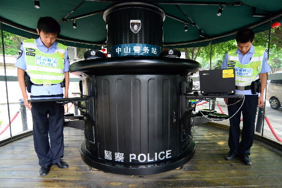 為紀念“九一八”事變81周年,9月18日上午,廣西梧州市公安局中山警務站值班民警在警報響起時,為“九一八”事變殉難者默哀。