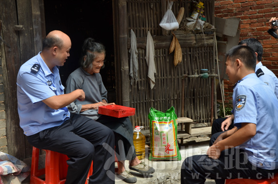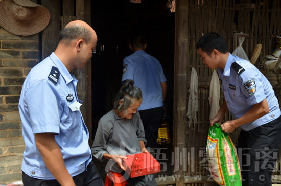當日上午,在龍新村78歲獨身老人鄧婆婆簡陋的家門前,民警與她圍坐一圈,“ 婆婆,天要開始冷了,你冬天的衣服夠不夠?。俊薄ⅰ坝惺裁蠢щy記得讓鄰居給我打電話”……民警關切地詢問道。感受到民警溫暖的關懷,鄧婆婆雙手緊緊拿著民警送來的一盒月餅,眼眶濕潤,無語凝噎,“衣服夠穿了,謝謝你們…… ”