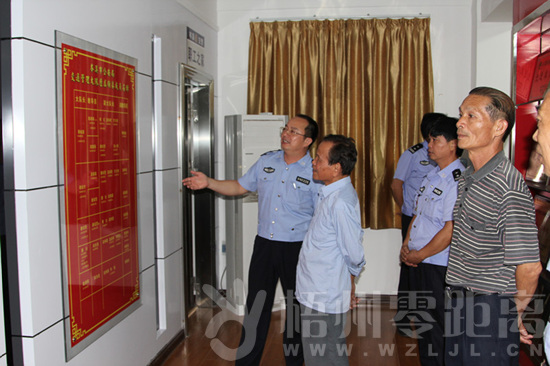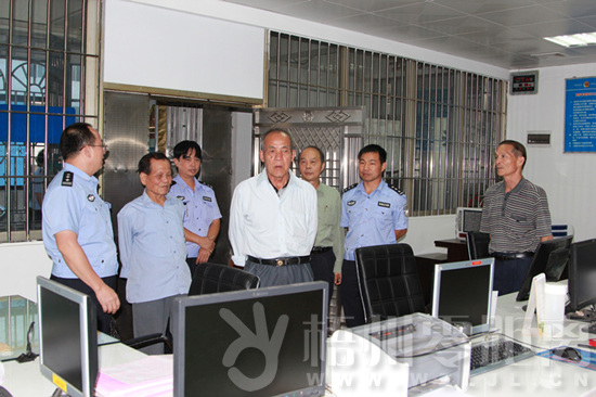 市公安局副政委、交管大隊大隊長盤涌輝及大隊領導班子成員一起陪同老干部們參觀了交警秩序中隊、會議室、車管所、五位一體及交警文化沙龍等場所,充分展現了我大隊科技要警力,科技強警的豐碩成果。