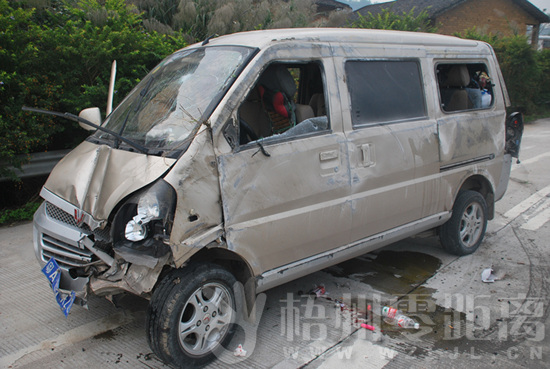 11月19日,重慶市江津市油溪鎮永竹村4組蔡增旭駕駛粵AB7X28號小客車,搭載7名親朋戚友從重慶往廣州探親。6時20分許,當到達廣昆高速G80線下行線玉林往岑溪方283公里+900米處時,由于駕駛員在高速行駛時因操作不當,致使車輛撞擊公路右邊護欄后側翻在公路路面上,該事故導致車輛及路產受損,4人受輕微傷,幸無人員死亡。