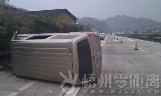 梧州零距離網訊(通訊員 蘇延炎)11月19日06時20分,接報在廣昆高速G80線下行線玉林往岑溪方向283公里+900米處,發生一起小客車側翻的交通事故,致車輛及路產受損,4人受輕微傷。