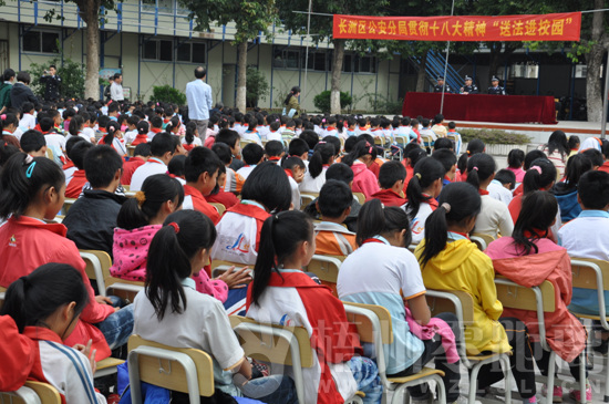 梧州零距離網(wǎng)訊(通訊員 莫黎)為貫徹黨的十八大精神,營(yíng)造“健康、文明、和諧、平安”的校園環(huán)境, 11月19日上午,長(zhǎng)洲公安分局組織民警深入龍新小學(xué)開(kāi)展“送法進(jìn)校園” 活動(dòng)。民警用通俗易懂的語(yǔ)言、生動(dòng)貼切的案例開(kāi)展法制教育,給全校300多名師生送上豐盛的“法制大餐”。