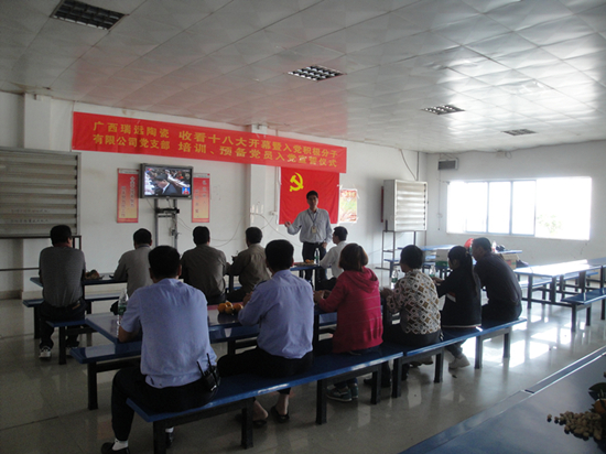??? 高清鋁型材廠、新中陶陶瓷公司等藤縣非公企業的黨支部,組織黨員干部、入黨積極分子學習領會十八大精神。韋賽瓊/攝