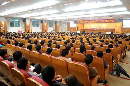 ????11月16日下午,市委召開傳達(dá)學(xué)習(xí)貫徹黨的十八大精神會議。黨的十八大代表、市委書記劉志勇傳達(dá)了黨的十八大精神,要求全市上下迅速掀起學(xué)習(xí)貫徹十八大精神的熱潮,以十八大精神來凝聚力量、引領(lǐng)發(fā)展,推進(jìn)梧州經(jīng)濟(jì)社會又好又快發(fā)展。孟亞西 攝