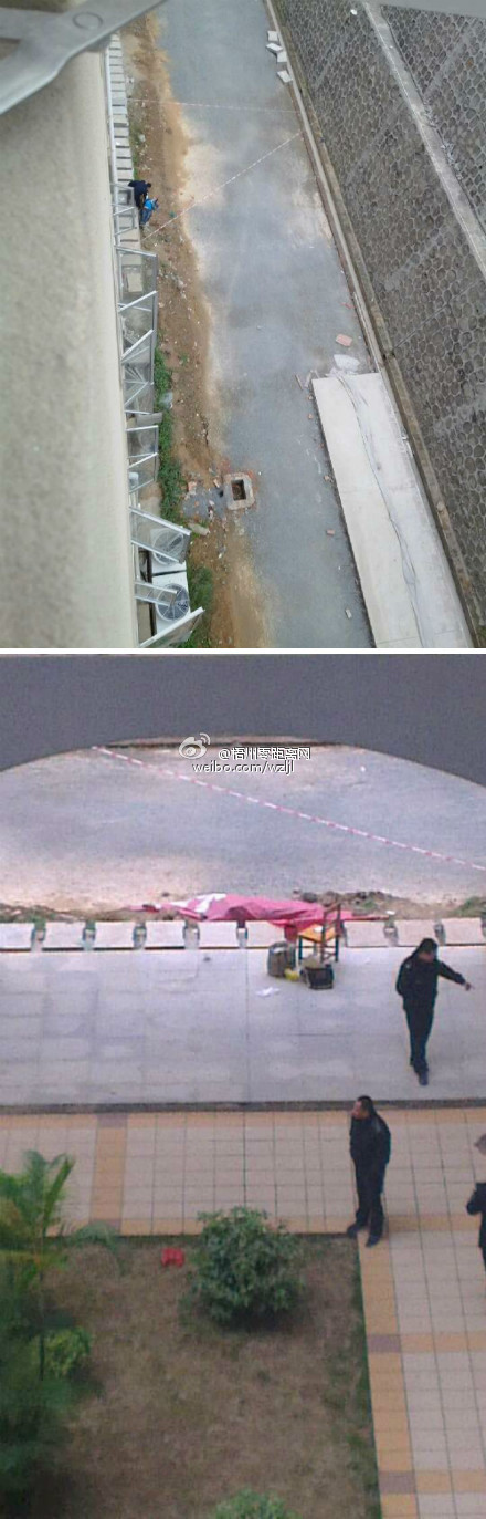 梧州零距離網訊(記者 覃燕霞 通訊員 周靜)據蝶山公安消息,18日清晨6時許,梧州學院清潔阿姨在校內綜合樓樓下發現一具男性尸體,遂通知學校報警。蝶山公安組織刑偵大隊、刑事技術人員以及富民派出所民警趕赴現場調查取證。經初步調查,死者為黑龍江籍25歲姚姓男子,畢業于重慶交通大學,2011年5月份以來一直在我市某船廠擔任制作部技術員工作。據廠方負責人反映,今年11月中旬其外婆去世后,他的情緒較為低落,12月14日下午姚某說頭痛請假,12月17日中午12時姚某又說頭痛再次請假,12月18日早上卻被發現在梧州學院跳樓自殺死亡。目前,公安機關正在對該事件作進一步調查。