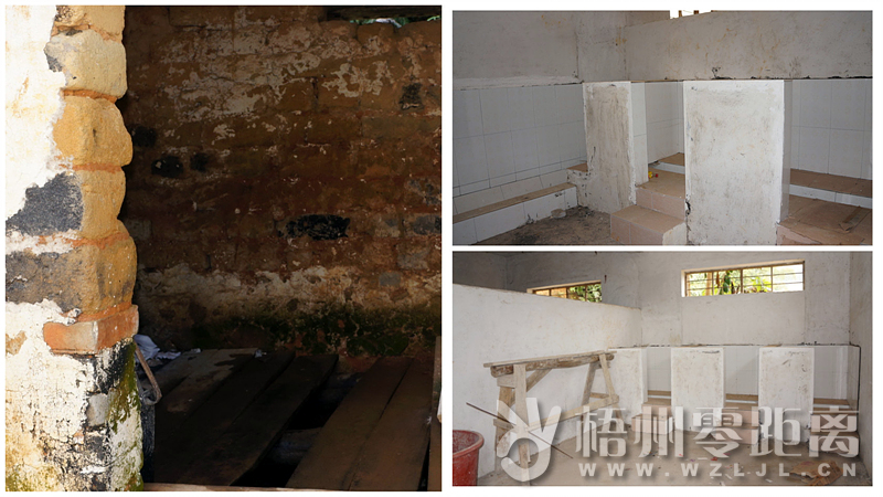 破舊的公廁(左)與學校新建的廁所。