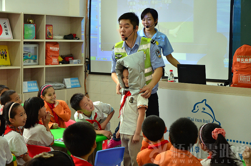 民警向小朋友們展示防災應急用具。覃燕霞 攝