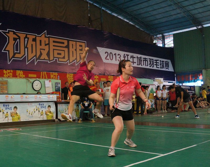 “羽林爭霸”2013紅牛城市羽毛球賽廣西賽區梧州站比賽現場。黃祎婧/攝 點擊查看更多圖片】