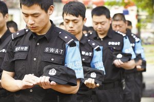 26日,綿陽公安援蘆警隊全體民警肅立默哀三分鐘