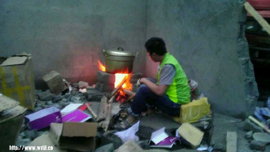 傍晚,義工在燒水洗臉洗腳,由于水資源緊缺,他們通常幾天才洗一次。
