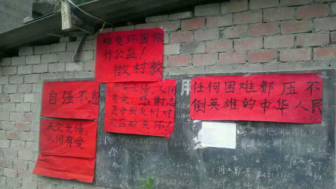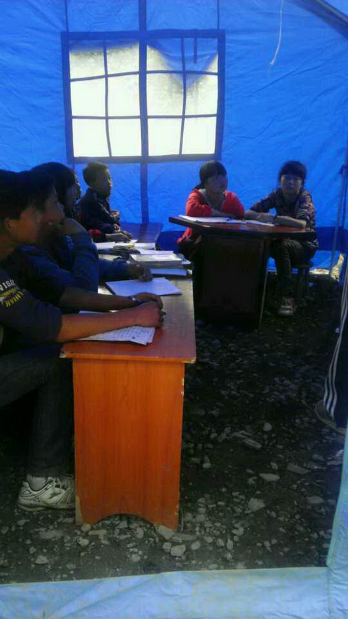 ??? 5月3日,阿雅和義工們一起,走訪探望了寶興縣茍山村小學、順江大馬村的孩子們,了解并記錄他們的需求,把情況反饋給志愿服務中心。其中順江大馬村的學校毀了,學生們只能在半山平地上搭起的帳篷里學習。