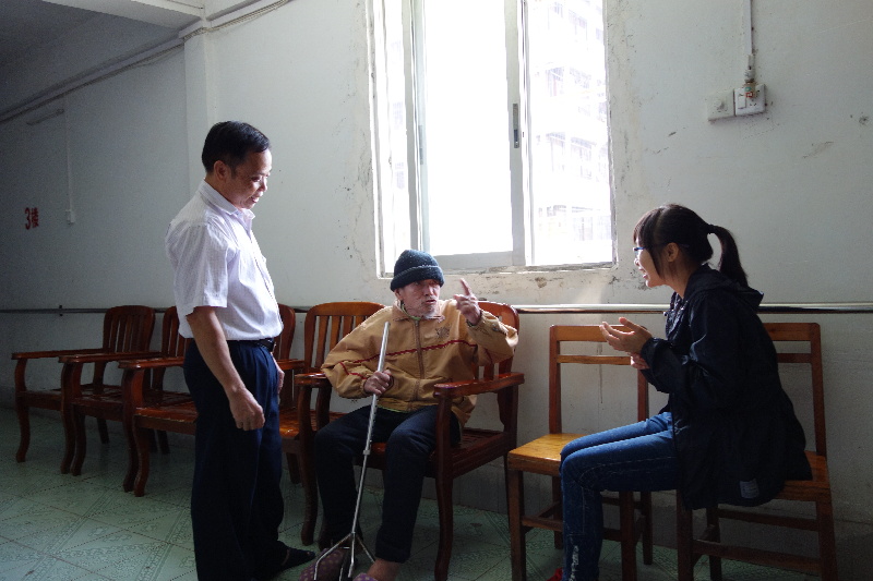 在與黃伯交流中,記者聊到了他的子女。這時黃伯的眼里突然涌出淚水——這頓時令記者手足無措,黎主任見狀馬上迎上來,用手輕拍著老人的背,溫柔地安撫他。“每個老人都有不能觸碰的話題,一說就傷心。”黎敏靜低語。