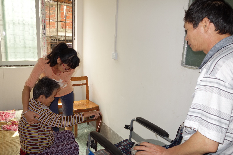 ????但是到記者上場時,無論怎么鼓勵,姚婆婆都不肯起來。經過耐心勸導,姚婆婆終于把手伸出來給記者扶著坐了起來。記者和施叔一起把她扶到特制的便椅上坐好開始方便,然后再把她扶回床上躺好。在這個過程中,姚婆婆不時鬧著小脾氣,在施叔和記者的不斷安撫下才平復下來。