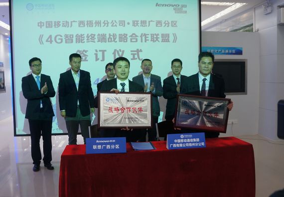 中國移動(dòng)梧州分公司與聯(lián)想廣西分區(qū)簽訂“4G智能終端戰(zhàn)略合作聯(lián)盟”框架協(xié)議