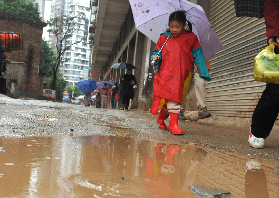 ????11月27日,穿著雨衣水鞋的小學生冒雨走在放學回家的路上。 當天我市迎來長時間的降雨,同時氣溫也有所下降,給市民的生活帶來諸多不便。 西江都市報記者 蒙紹松/攝