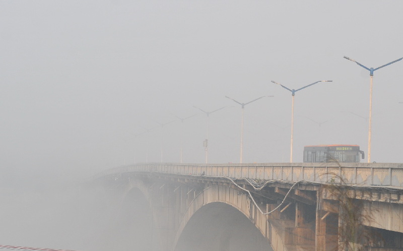 ????上圖:當日早上,桂江二橋隱沒在一片迷霧之中。