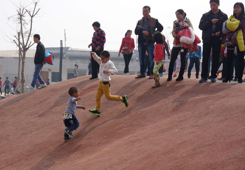 大年初一,在蒼海公園的兒童娛樂區,小朋友與家人共享新春快樂時光。 記者 陳健新 /攝