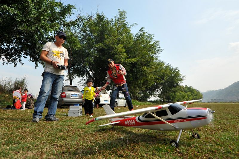 航模愛好者利用春節假期帶上家人朋友舉行航模聚會。 記者 何鎏/攝