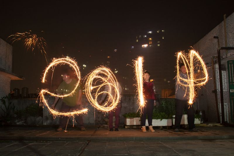 市民用煙火畫出“2014”字樣。 柒們落雨郎/攝