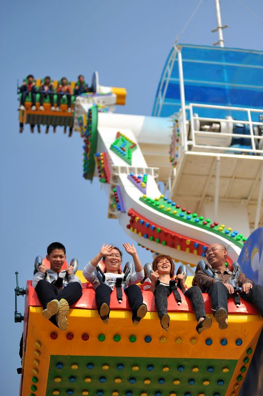 玫瑰湖公園內新開放的大型游樂設施讓市民們樂開了懷。記者 何鎏/攝
