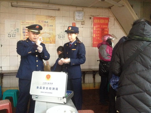 ????昨日,萬秀區(qū)工商局執(zhí)法人員帶著快速檢測(cè)儀器來到健記湯圓專賣店,對(duì)該店用于制作湯圓的糯米粉進(jìn)行檢測(cè)。