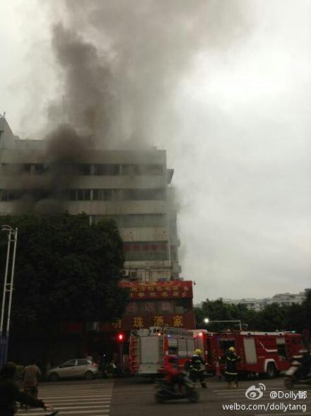 ?今日(7日)18時,網(wǎng)友@Dolly鄧發(fā)表微博稱:大火,希望沒人受傷!并配上兩張現(xiàn)場圖片。圖片顯示,起火位置在潘塘公園路口明珠酒家樓上,現(xiàn)場明火頗大,還冒起濃煙,消防官兵已到現(xiàn)場撲救。
