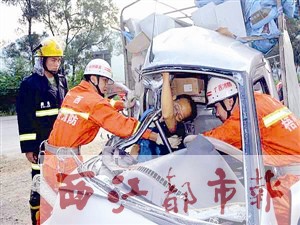 ????在看到現場情況后,現場指揮員立即下達救援命令:由1名消防戰斗員安慰被困者,穩定其情緒,同時,由3名有救援經驗的攻堅人員一起對被困者展開救援。救援人員利用液壓鉗把變形的車門打開,再利用液壓頂桿、撬棍、開門器多種救援工具配合使用,把擠壓著駕駛員的方向盤撐開,成功將駕駛員救出并送到120急救車。不幸的是,副駕駛位置上的被困傷員經現場醫務人員檢查后,確認已重傷不治。目前,事故原因交警部門正在調查當中。