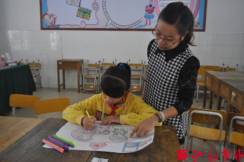 據了解,潘歡歡從小學一年級開始學習畫畫,曾獲得過第四屆廣西未成年人美術書法攝影大賽金獎。但為了這幅作品的創作,她也花了不少心思。潘歡歡告訴記者,在整幅畫打稿時,由于初稿中人物太小,影響構圖,不得不在指導老師幫助下花時間修改。在給作品上色時,調好的顏色在草稿紙上試驗時顯示出來較淺,她也只能耐心一點點加顏色,試驗好幾次才調到理想顏色,最終完成作品。