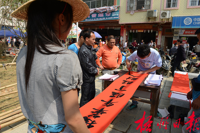 據悉,這兄妹倆是當地居民,近日在鎮區圩市書寫春聯銷售,不少趕圩的群眾看到他們的春聯筆劃圓潤厚實,紛紛選購裝飾家居。