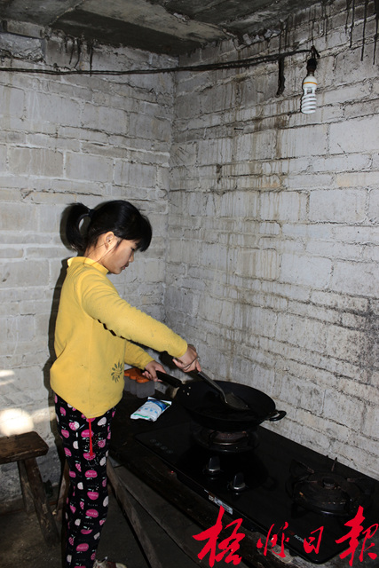 ????昨晚,江保全拿著凳子坐著,左手用力拄著拐杖,右手艱難地拿著鍋鏟準備炒菜。吳天雪看著外公難受的樣子,就跟外公說:“外公,你在旁邊教我,我來炒菜,以后菜就由我來做吧。”2009年,江保全被診斷出股骨頭壞死,為了給他治病,兩個兒子和兩個女兒都在外面打工掙錢。隨著病情的不斷加重,江保全只能靠拐杖和凳子行走,而落在小天雪身上的家務就逐漸多了起來。