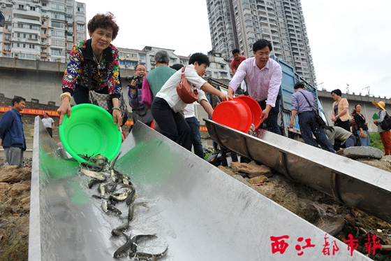 ??? 西江都市報訊 (記者 廖雙艷) 4月1日,梧州市水產畜牧獸醫局在梧州蔬菜碼頭舉行水生生物資源增殖放流活動,當天,不少市民也一大早來到這里參加放流活動。