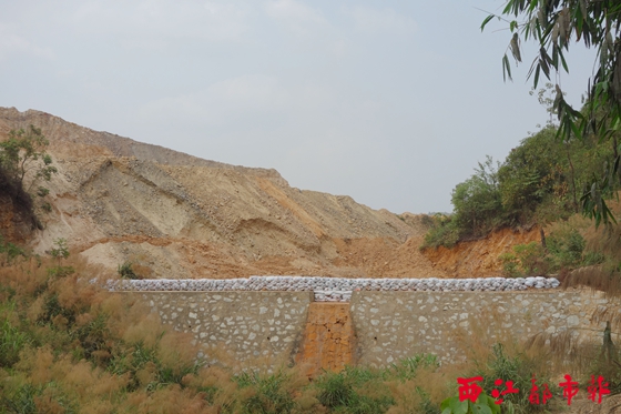 責任單位雖然對攔截壩進行了清理并加高,但深燃公司表示攔截壩旁的泥土依舊松軟,若發生暴雨天氣,容易發生地質災害。 本報記者 謝韻/攝