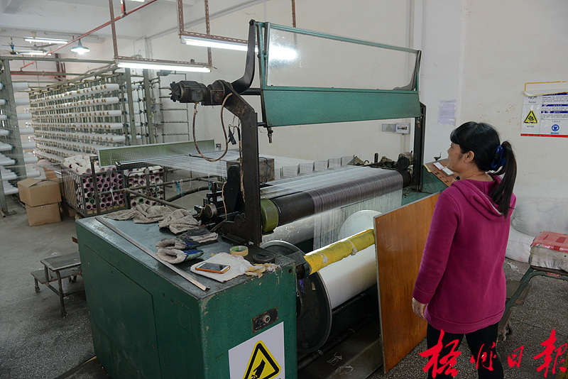 ????12月6日,在梧州市光華紡織制品有限責(zé)任公司車間內(nèi),工人正在加工毛巾制品。