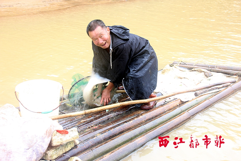 ????蒼江魚子清晨集,設網提綱萬魚急。11月27日清晨,賴杰標到河中捕魚,不久后便開始慢慢收網。這真是激動人心的時刻,“吱吱嘎嘎,吱吱嘎嘎”,網一點一點往竹排上拉起,他的視線緊緊地盯著慢慢被拉上來的漁網,大氣都不敢出。“一條野生草魚,好大!”隨著他的一喊,一條活蹦亂跳的大魚出現在面前。經過稱重,這條大草魚有5.2公斤。
