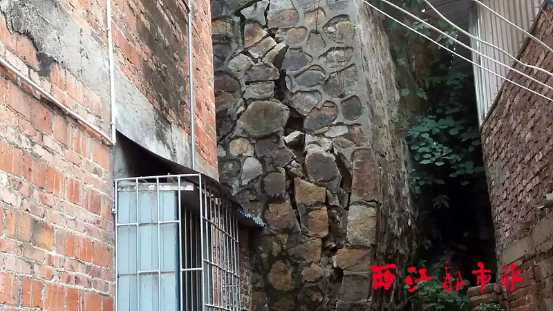 ????文瀾路一級12號居民蒙女士稱,石墻緊貼其房屋,前段時間她發(fā)現(xiàn)石墻的裂縫變大,石墻明顯變形。“萬一石墻出現(xiàn)倒塌,我的房子就會被砸個正著”。