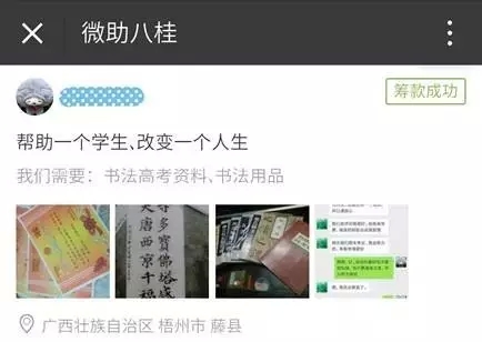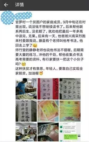 ????官羅村“第一書記”覃敏妮說,因為阿鋒在2017年12月要進行一次書法高考,考前需要做大量練習的書法資料,另外,參加書法提前批考試也需要路費,所以,近日,她將阿鋒的故事發到了朋友圈,希望為他收集點書法高考需要的資料,并期待“行家”現身指導。她還通過廣西區黨委組織部等部門單位共同參與搭建的“微助八桂”平臺,幫阿鋒發起了500元的籌款項目,為他籌集購買書法用品、考試資料和參加培訓的費用。