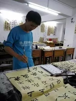 ????阿鋒產生輟學念頭后,村委幫忙做過思想工作,學校的老師也和阿鋒談過,后來,學校一位教書法的林老師比較欣賞阿鋒的書法,讓他免費跟著學,阿鋒這才又回學校上課了。
