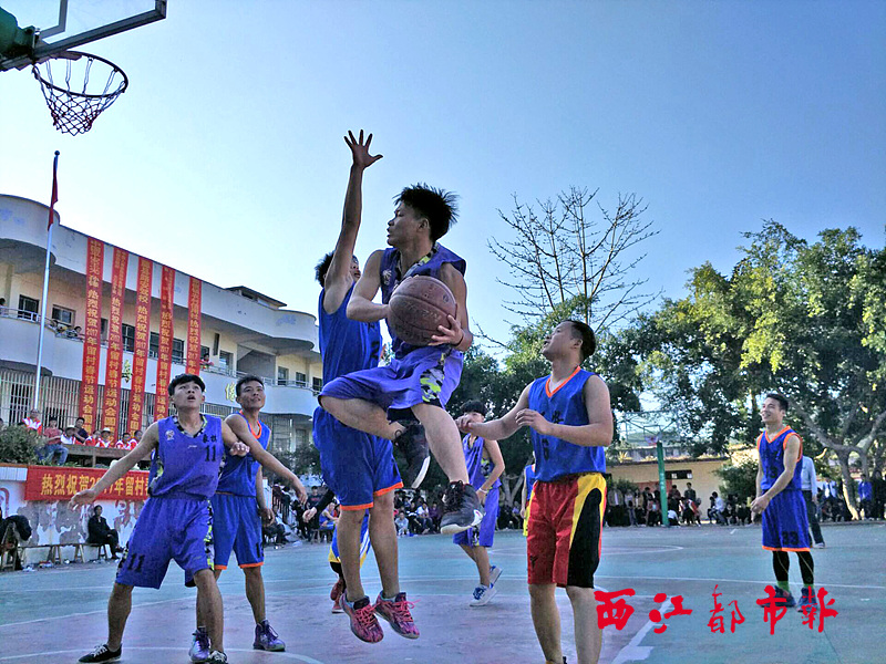 ????藤縣象棋鎮留村舉行2017春節運動會,返鄉過年的農民工們成為村里的籃球“明星”。 西江都市報記者 陳雨燕 攝