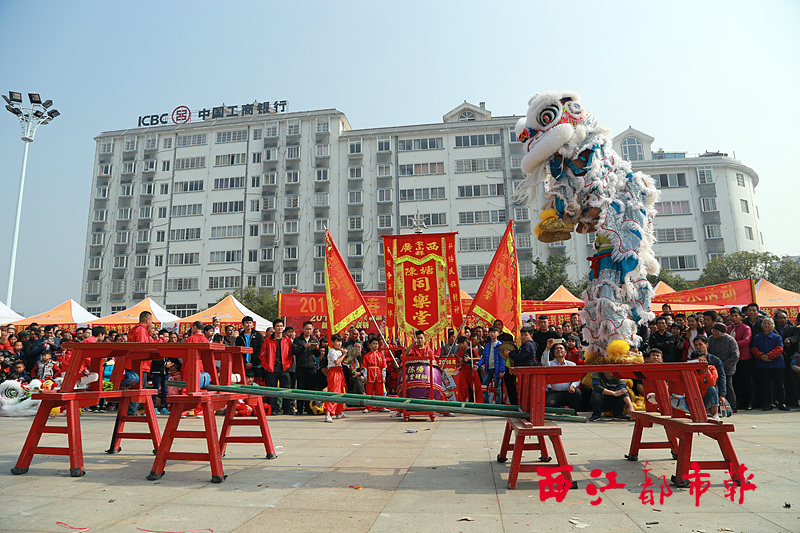 1月28日(年初一),蒙山縣舉行迎春武術舞獅表演活動。通訊員 關新 攝