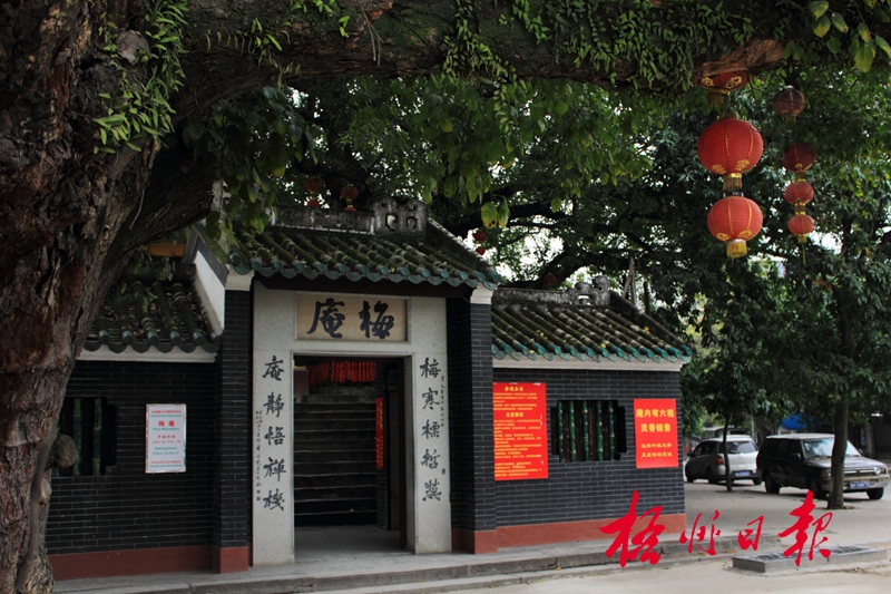 ????“梅寒標哲蕊,庵靜悟禪機”,庵門一幅簡樸的對聯,將本庵的特色高度概括。門前有一口千年六祖古井,井上用鐵絲網保護,仍可見清澈的井水。講起這口井有一段小故事:唐玄宗時期,六祖途徑端州,即今天的肇慶,偕弟子來到城西的山岡草庵小住,弟子奉上茶一杯,六祖見到茶水渾濁,便用錫杖在庵前指地開挖成井,弟子用井水澆灌,梅樹即時開花,后來六祖的弟子為紀念先師,于宋至道二年將原來草庵擴建,在庵前后山岡遍種梅樹,取名為梅庵,水井則保存至今。