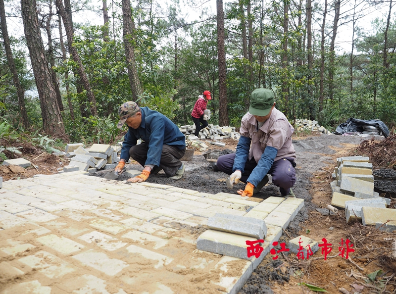 ????3月3日,培中村村委辦公樓后山,一條石階小道蜿蜒伸向大山深處。沿著小道前行三公里,六名工人正在路的盡頭修路。“這是培中村的森林登山綠道項目,2個月前就開工了。”培中村村支書朱卓錦介紹,綠道共18公里,將通往村里的九龍山,道路修通后山里將修建九龍寺,今后培中村將打造九龍山宗教文化游。