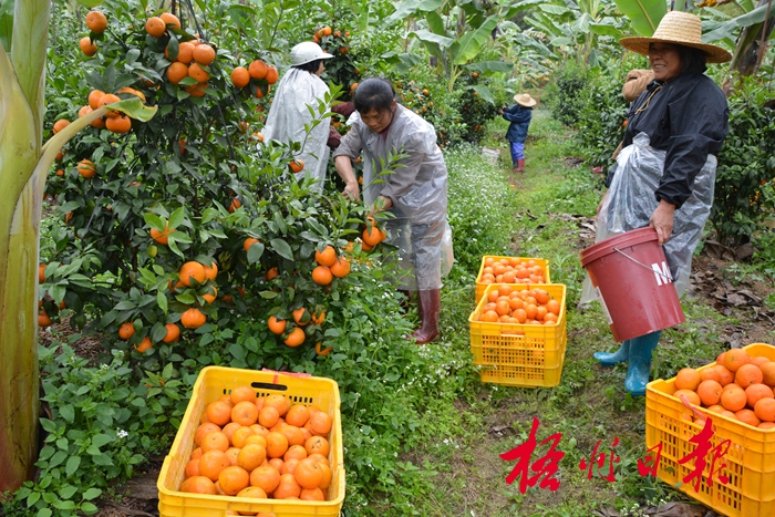 3月8日,在岑溪市馬路鎮水果套種基地,果農正采收沃柑。